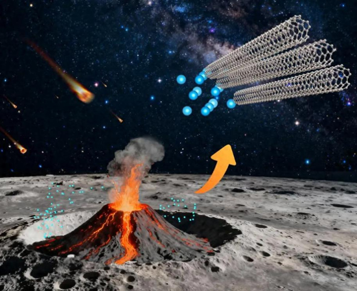 这次突破,归功于吉林大学科研团队。他们像给月壤做“CT扫描”一样,用尖端显微与光谱技术,对嫦娥六号带回的样品进行了深度解析,首次在自然界中确认了单壁碳纳米管的存在,并破解了它的“诞生密码”:微陨石撞击 + 火山活动 + 太阳风亿万年辐照,在铁元素催化下,月球竟在极端环境中完成了人类都觉得棘手的材料合成!