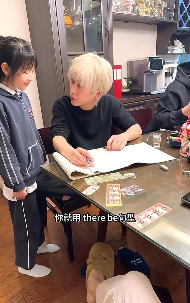 顶着一头黄毛,却用最严厉的口吻指导着儿子的英语功课,以至在一家东说念主吃饭、出去玩的工夫,这位黄毛的父亲依旧在教儿子英语,而那位酗酒的母亲,天然看似不持重,却也不曾疏远儿子的熟谙。