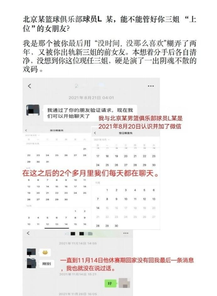 近日有网友在嘱托媒体平台上爆料某L发轫的北京俱乐部篮球教授员出轨,看风使舵。
