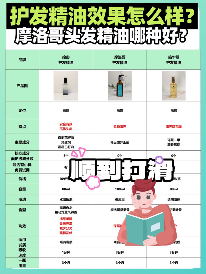 很多姐妹问摩洛哥护发精油和老牌国货精油到底值不值得入,先跟大家说个核心问题:护发精油有用吗?肯定是有用的,它能在发丝表面形成保护膜,填补毛鳞片缝隙,缓解干枯毛躁,但别指望能从根本改变发质,毕竟发质底子和日常护理习惯才是关键。再说说护发精油适合什么发质,像干枯、烫染受损发质用着适配度最高,每次吹到七八成干涂两滴,顺滑度明显提升;但细软油头要慎选,选质地轻薄的款,不然容易贴头皮显扁塌。不管是摩洛哥款还是老牌国货,核心都是看质地和成分,避开矿物油、人工合成色素这些添加,植萃复配的款相对更温和。我实测下来,两者在基础柔顺效果上差别不大,只是香味和吸收速度有差异,不用盲目追热门。接下来给大家分享我选购护发精油时的一些经验,纯干货无套路,建议先赞藏慢慢看。