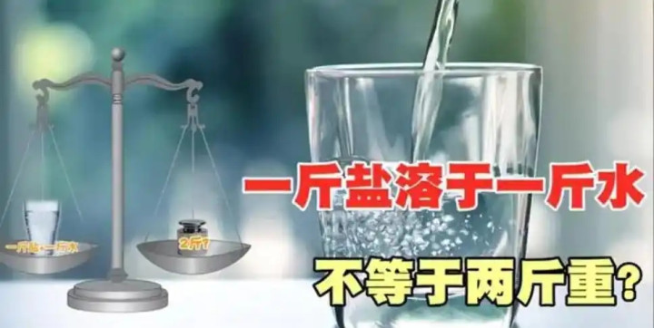 作念饭时往水里撒盐,是咱们每天都会重迭的行动。咱们早已习气了这种日常操作,却很少有东说念主停驻脚步念念考一个看似稚子却藏着天地真谛的问题:1斤盐放进1斤水里,熔解之后,盐和水的总质地,到底是等于2斤、大于2斤,如故小于2斤?